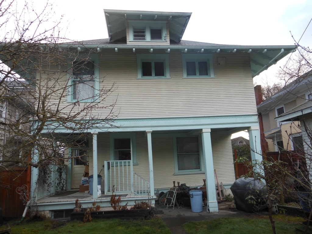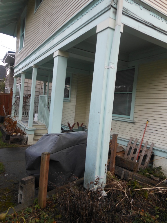 An older gentleman owns this fine old Capitol Hill home in Seattle. Many homes in this neighborhood are over 100 years old, and are getting to be a little creaky, as may happen to us all. The home is a little unusual in that the rear section of the upper floor cantilevers about 10 feet past the lower floor exterior wall, and is supported by posts.